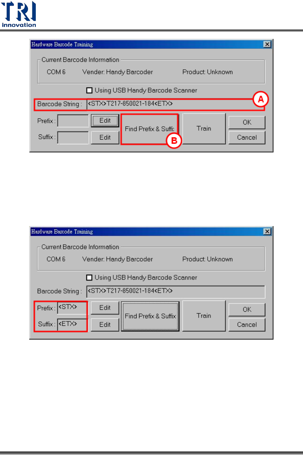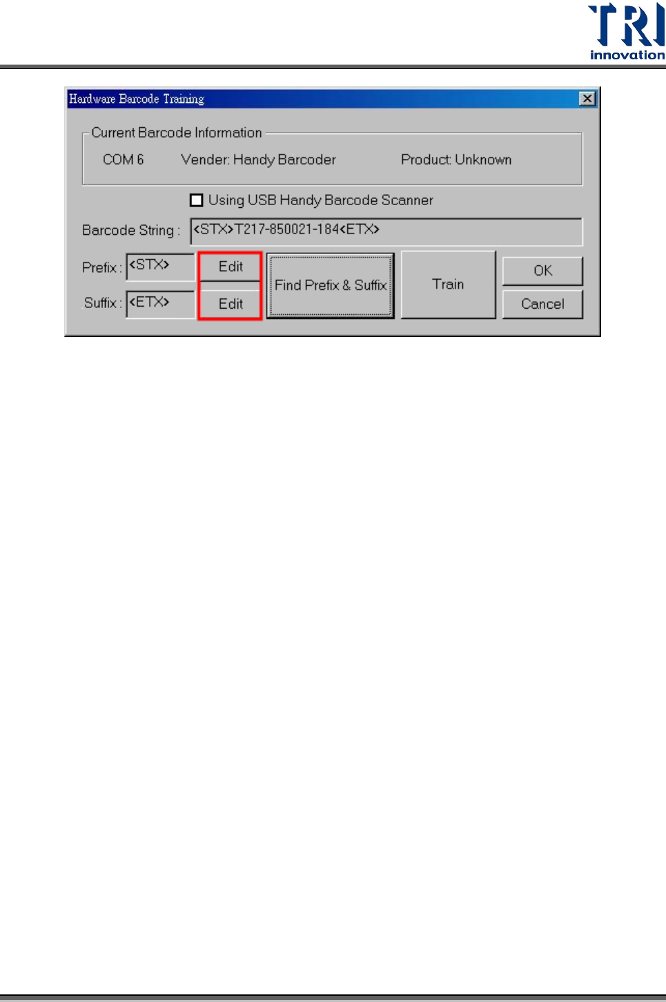 Stpe4. 系統會自動顯示推測的前後置碼。在本例中,前置碼為[STX],後置碼