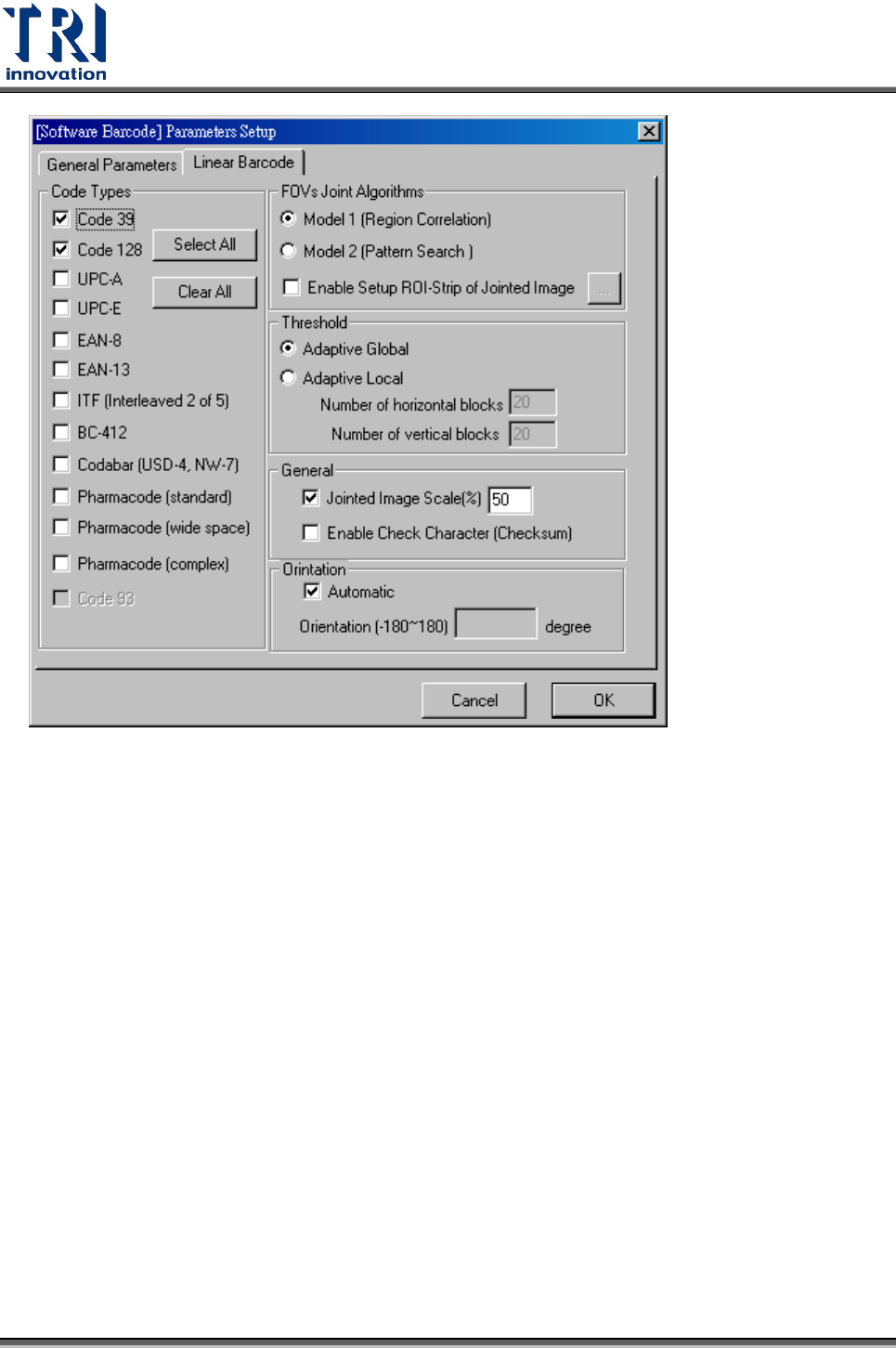 Test Research Inc. 124 TR 7700 S II User Guid e – Softwar e Minimum Number of Characters — 欲解析的條碼字串最小可能的字元數。系統 預設 5 。 Maximum Number of Characters – 欲解析的條碼字串最大可能的字元數。系統 預設 32 。 Syst em Parameters – 系統參數 Enable De…