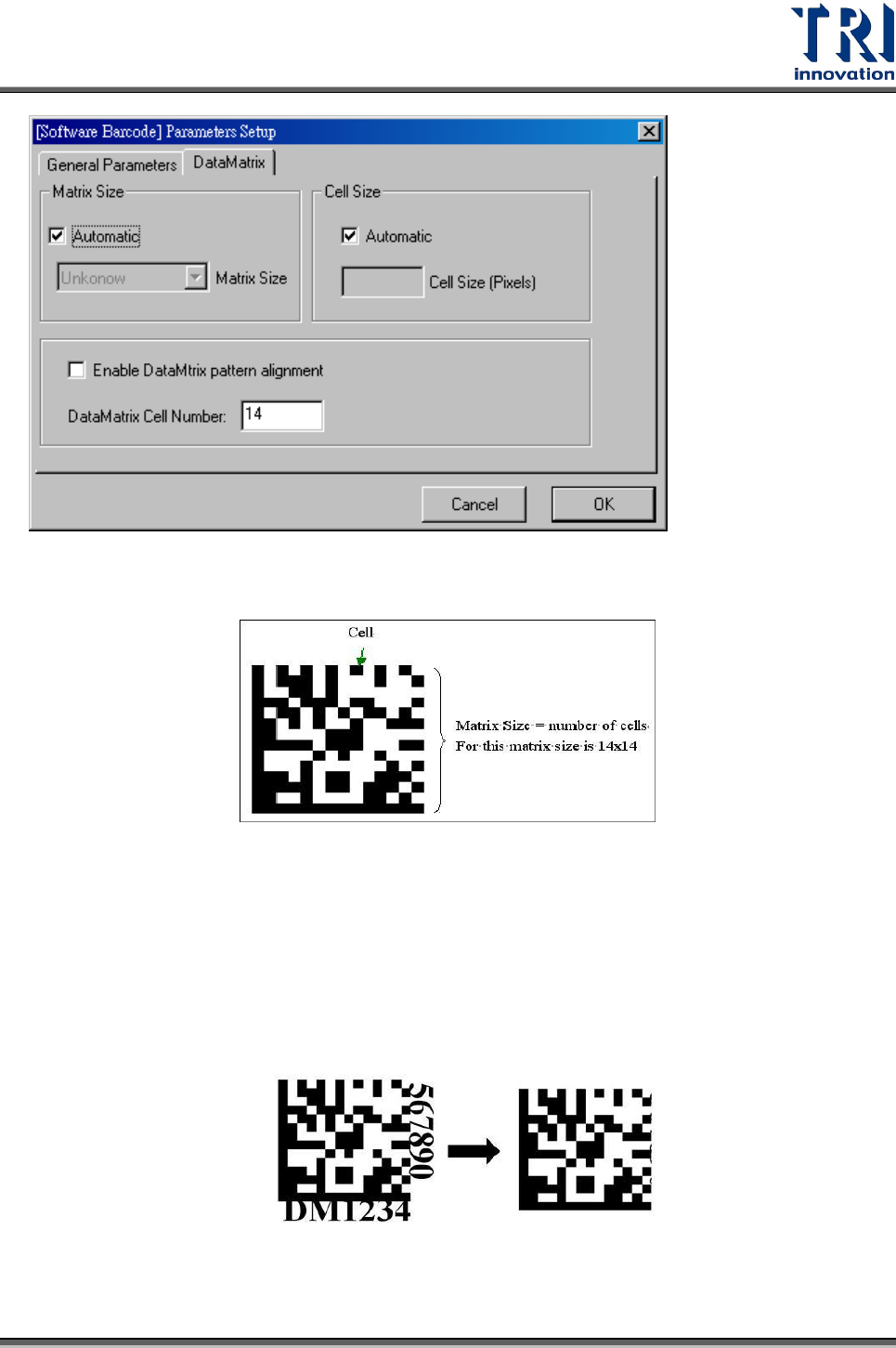 Cell Size–陣列元素尺寸(Pixel)。系統預設『自動偵測』。意義與 DataMatrix