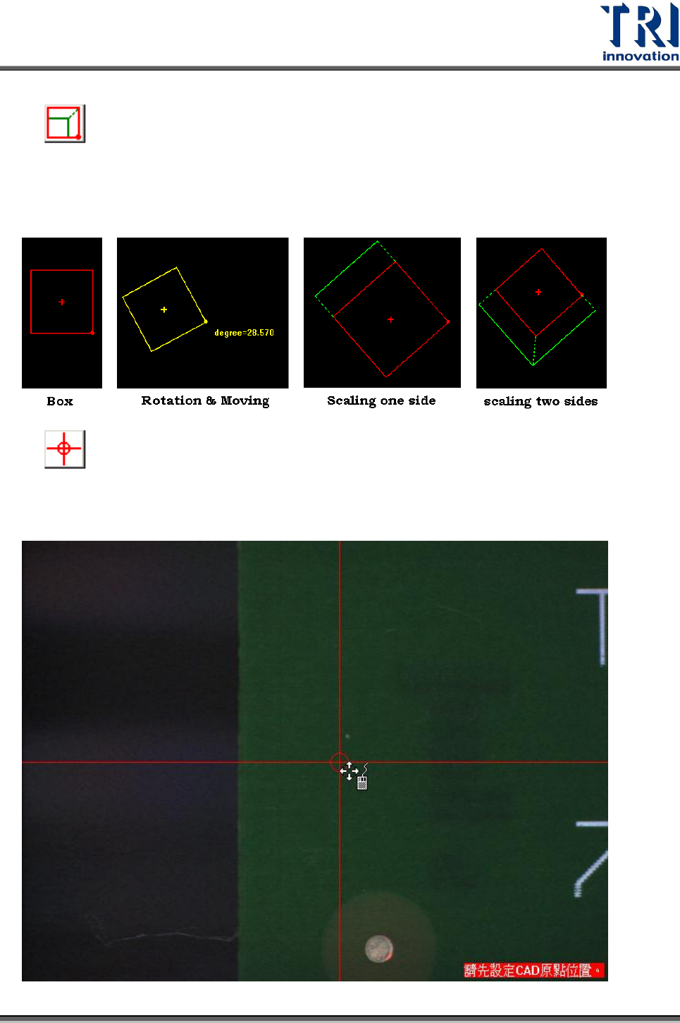 定義元件座標的工具。點選此按鈕會出現一組十字線條,若以此工具來定義 CAD