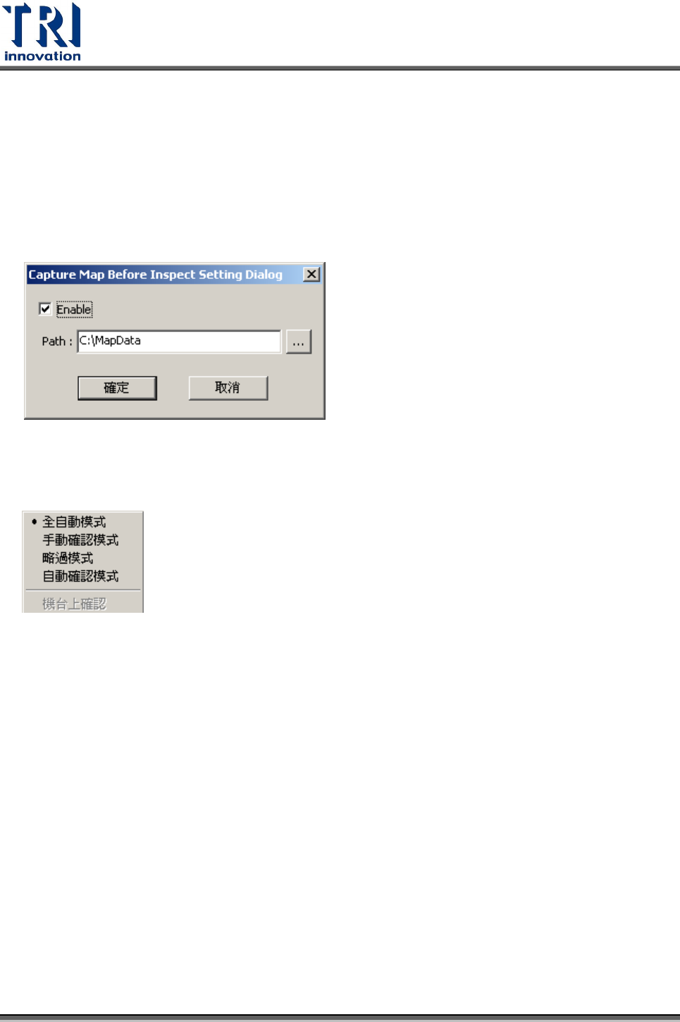 存在使用者指定的目錄下, 是否啟動及指定目錄皆依機台存在註冊表內。當選擇功能後,