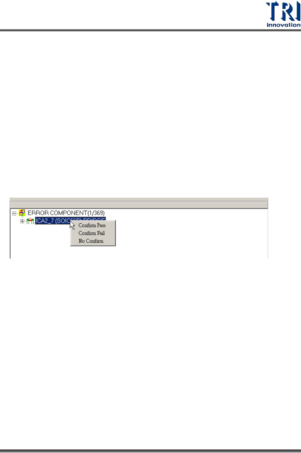 Test Research Inc. 186 TR 7700 S II User Guid e – Softwar e 3.6.4 自動確認模式 檢測後將直接將結果輸出,並接著進行下一片電路板檢測,且電路板瑕疵點位置圖放 大兩倍,直到下一片電路板的檢測結果出來為止。此功能可以提供線上作業人員利用 此圖示,直接比對確認電路板是否有瑕疵。 3.6.5 機台上確認 此功能只有在選擇 [ 手動確認模式 ] 時才可使用。原本資料會傳送至維修站…