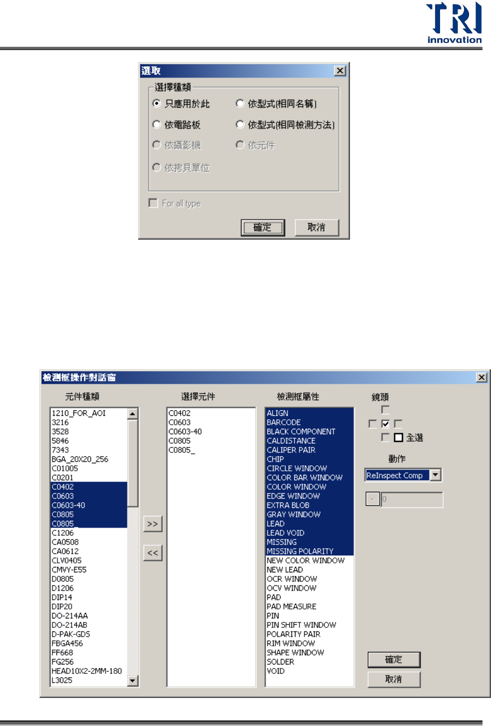 之後,在[動作]欄位中選取[ReInspect Comp],然後按下[OK]鈕,則程式