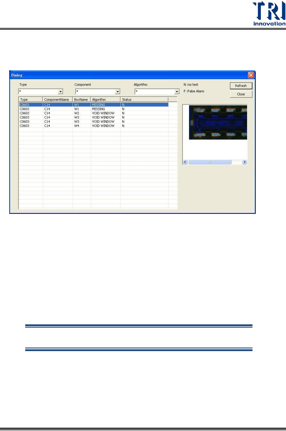 點選有問題的元件後,可以在右邊看到該不良的影像,並且可以在上面的選取條件