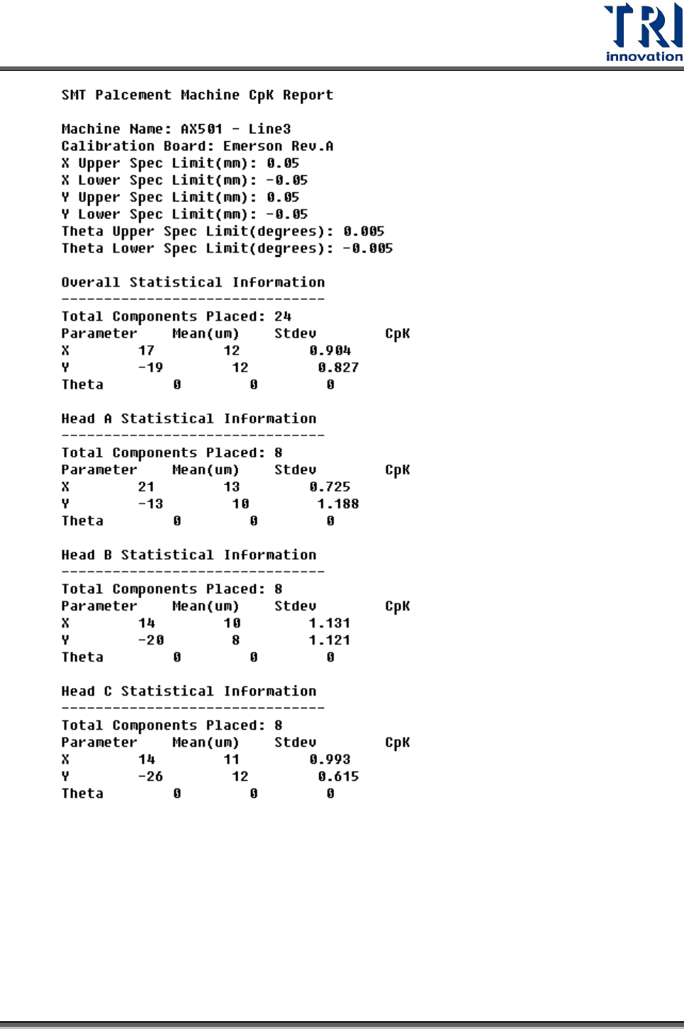 (3) CpK Report 輸出格式: 輸出全部與個別統計資料,統計資料輸出單位為 um。