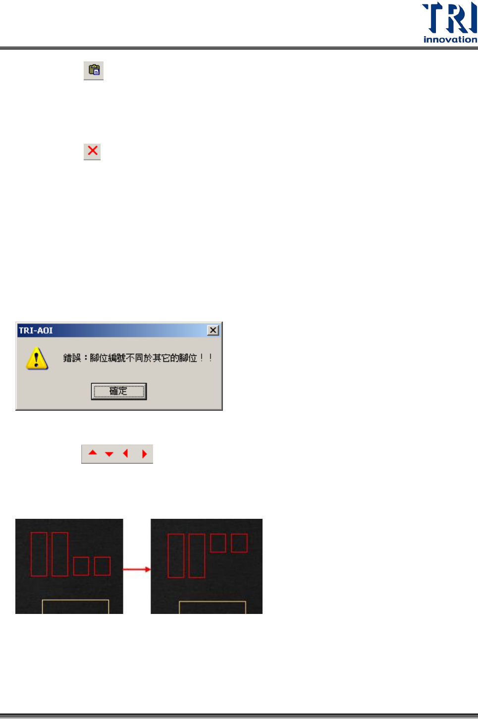 他 IC 腳的檢測框大小與參數設定。若選擇的檢測框與[Pin]框沒有連結,則會出現以下