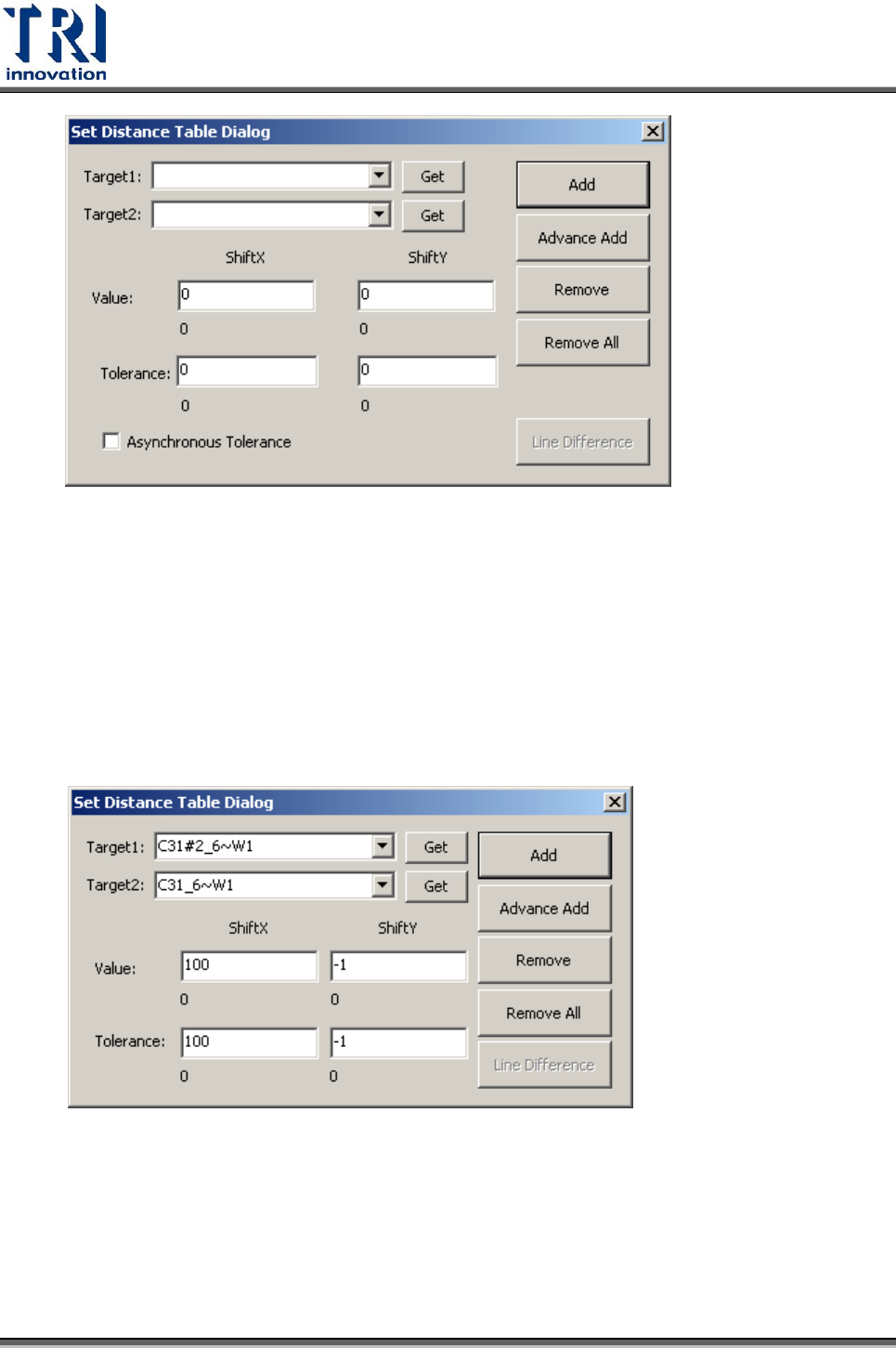 Value:ShiftX、ShiftY 的設定值,若 Target 有一個為測線的框(CalDistance),則
