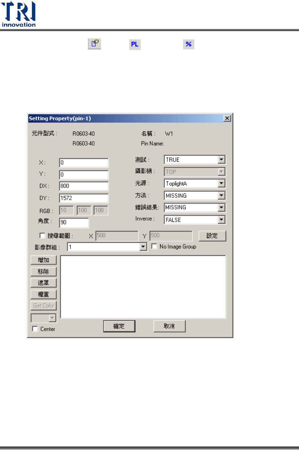 7) 在屬性視窗內按下[增加]按鈕,來增加元件的待料影像,以作為以後比對上的標