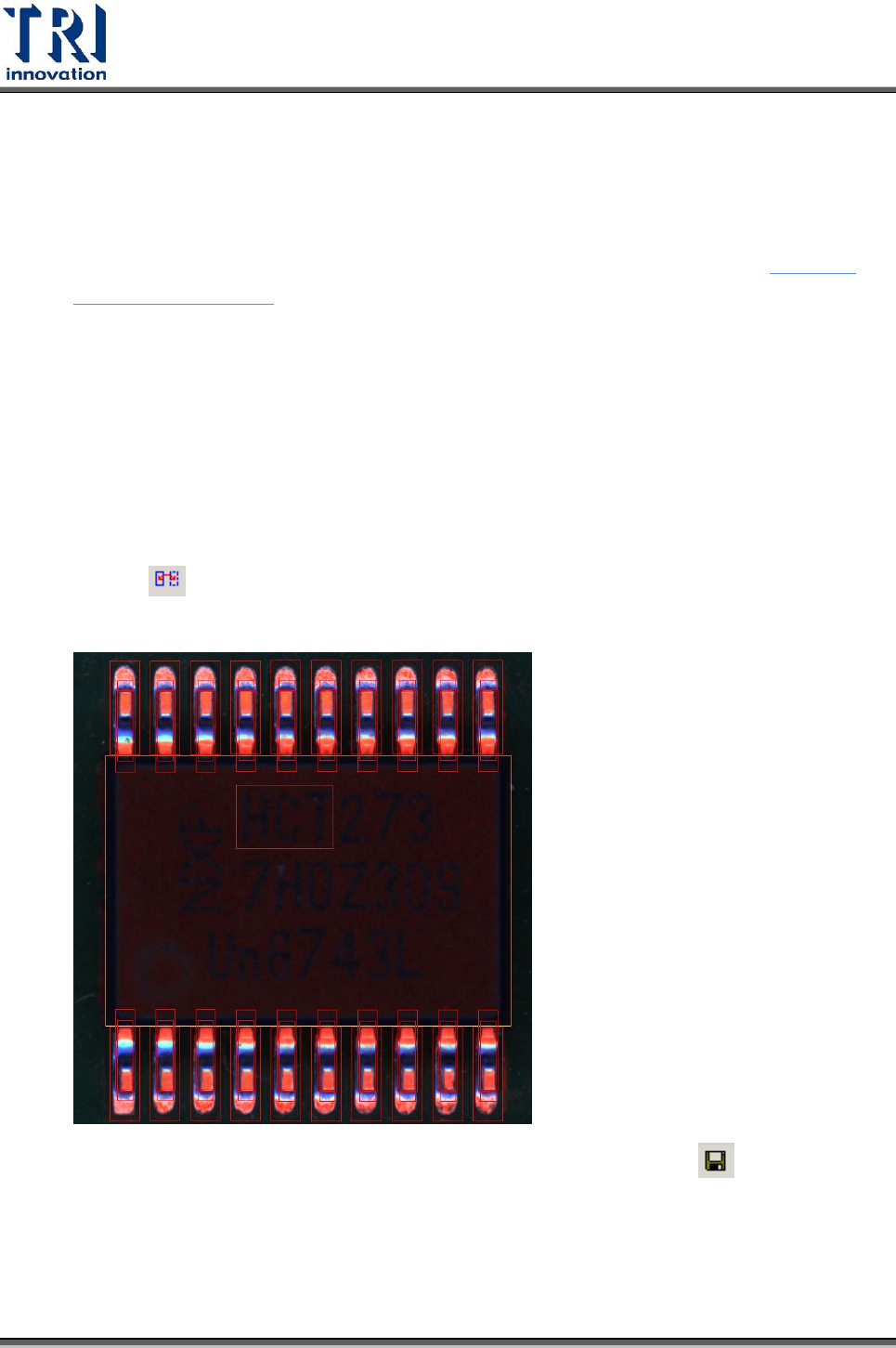 6) 系統會依照 IC 腳的位置,自動產生檢測框,如下圖所示。若有比下圖多出的檢測