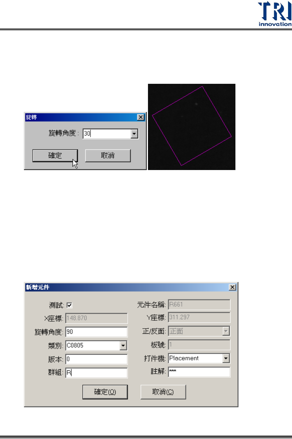 再按下滑鼠左鍵,會出以下對話窗,輸入此顆元件資訊後,按下[確定]即可。在