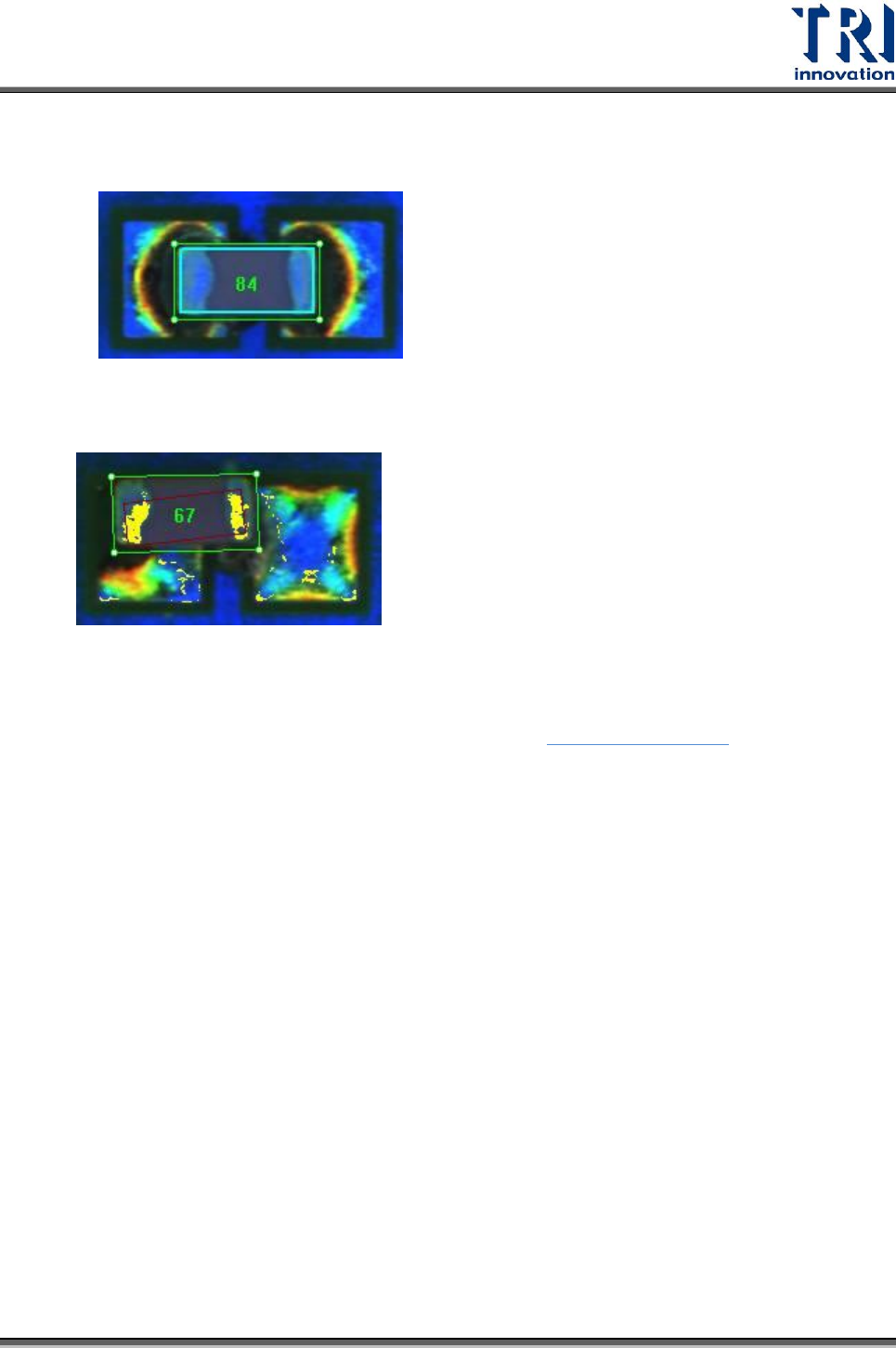 Test Research Inc. TR 7700 S II User Guid e – Softwar e 459 5.4.1.2 影像區域檢測框顯示 亮紫色 :萬用框。選擇一個 [Missing/Missing Polarity] 或 [Lead] 框後,滑鼠游標對著 萬用框按滑鼠左鍵兩下,可以將萬用框大小更改至與檢測框相同且移動到所選擇的 檢測框上方。 橘色 :尚未被教導的檢測框。 深藍色 :不檢測的檢測框。 灰…
