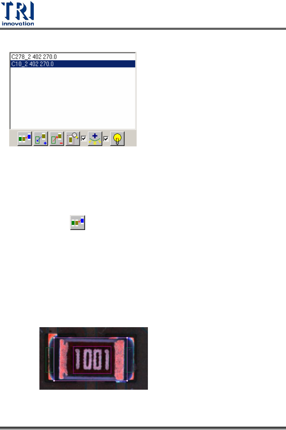 教導所選擇的該顆元件。教導表示將標準影像、參數以及其他設定套用到本顆元件上,
