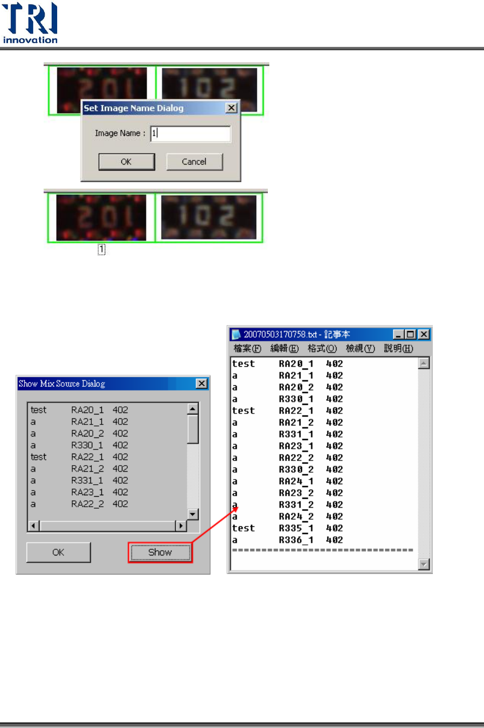 Set Name:可設定代料影像的名稱。在檢測完後會自動檢查在同 Type 內,是否