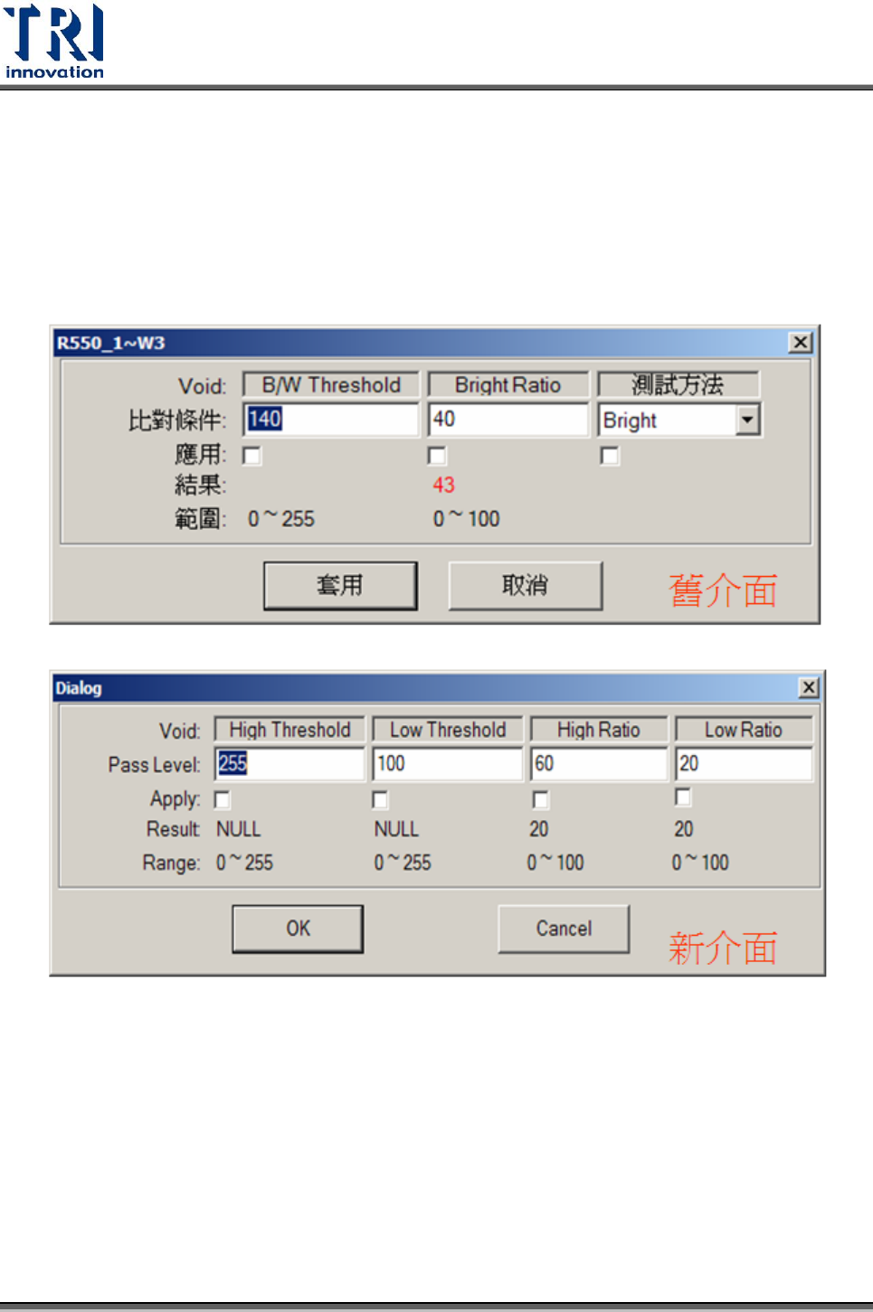 Ratio 值也由原來的 Bright/Dark 變成 High/Low Ratio,介於兩者之間的值才算檢測