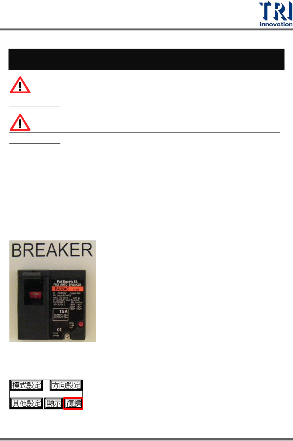 3. 開啟機器後門之斷路器(向上拉開)。