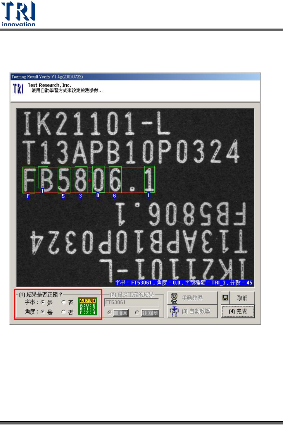 4. 辨識後會顯示一對話視窗[Training Result Verify],在視窗左下角會尋問[結果