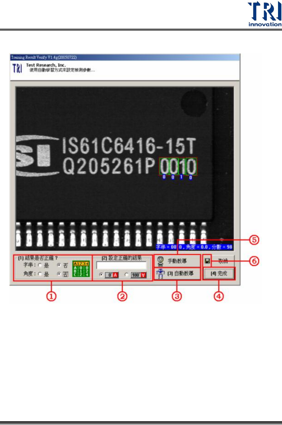Test Research Inc. 588 TR 7700 S II User Guid e – Software 4.2 Training Result Verify 界面功能說明