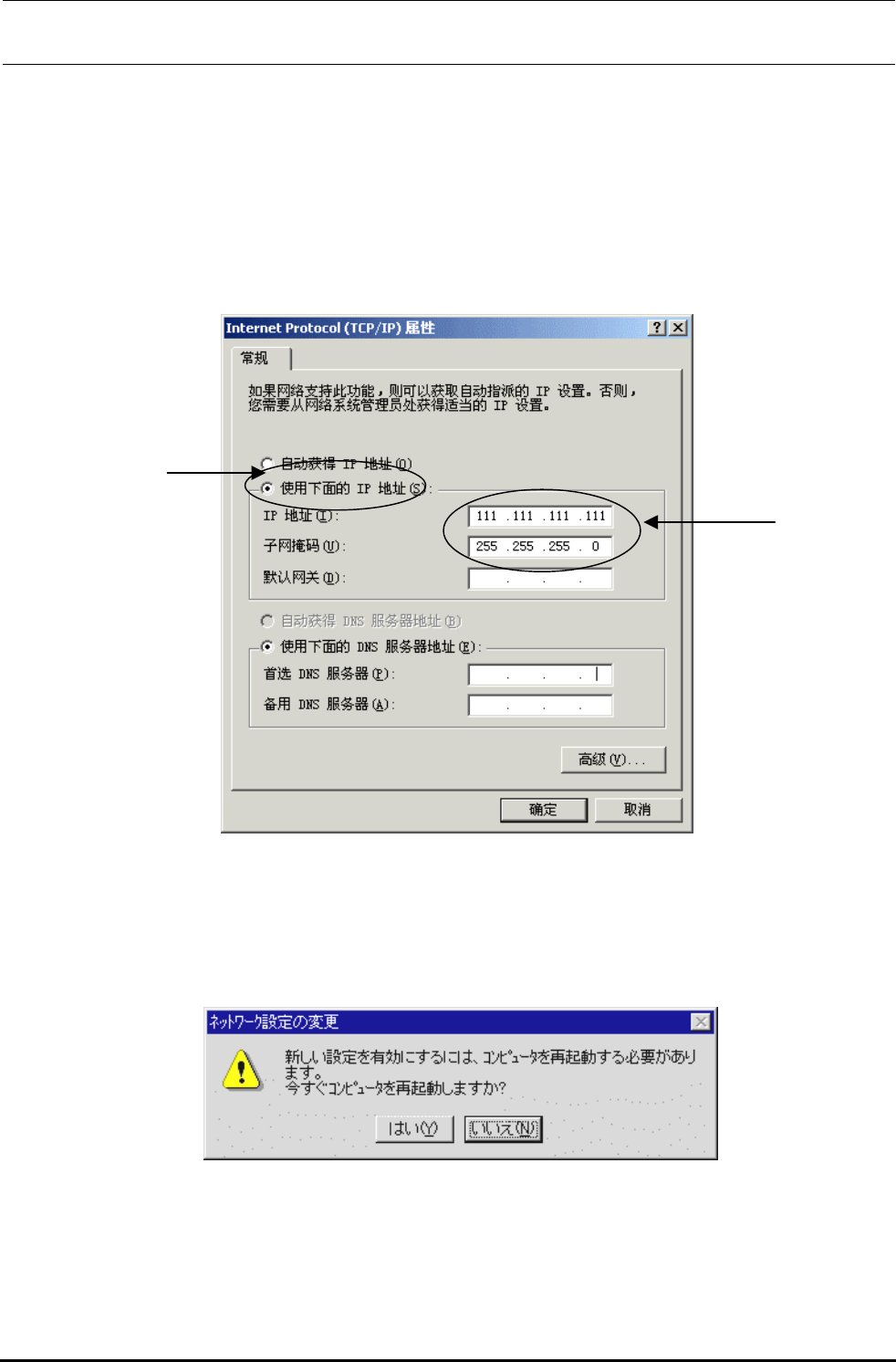 址(S)”,并指定②[IP 地址]、[子网掩码]。关于 IP 地址。有公司内部规定时,请按照公司内的网络负