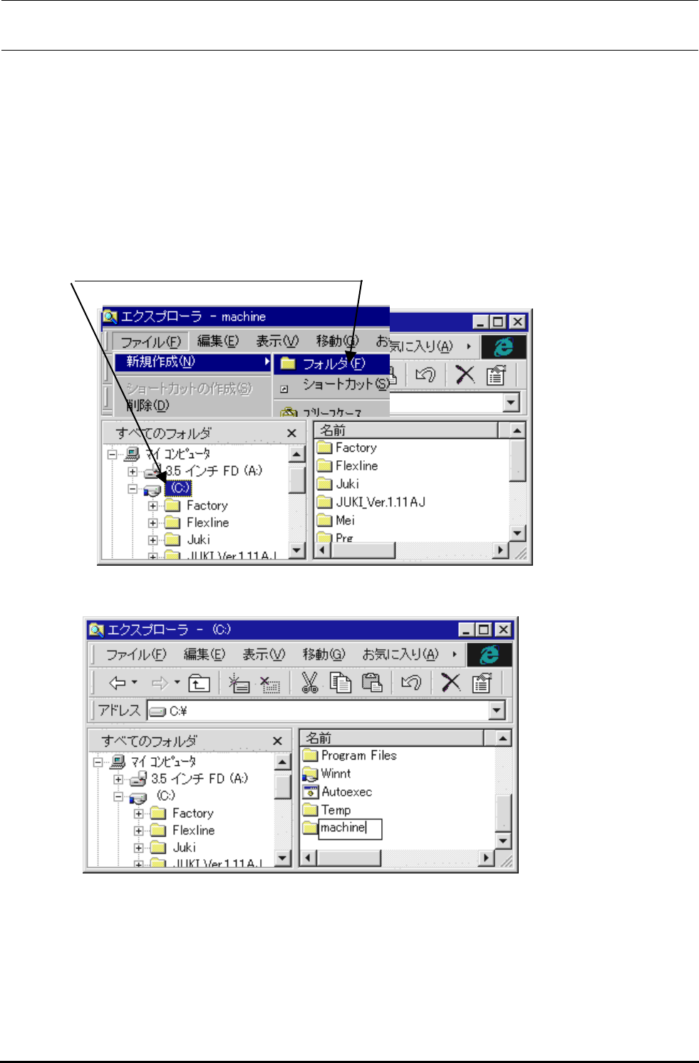 4) 在 C 驱动器下,“machine”文件夹被编制。Machine 文件夹的下面,请编制“prg”文件夹。