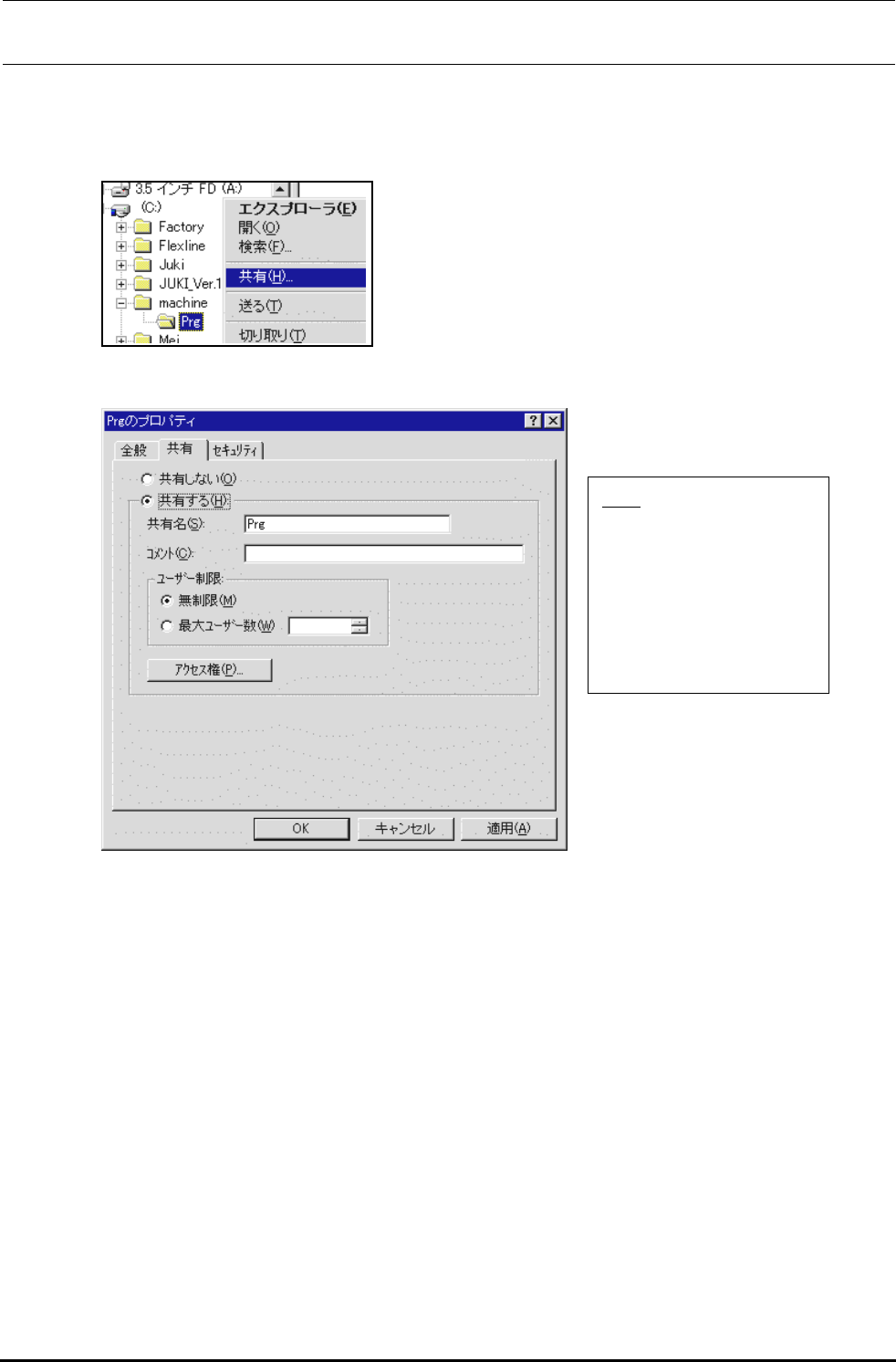 在 C 驱动器下,编制“C:\machine\Prg”的文件夹,设定共有 Prg 文件夹。