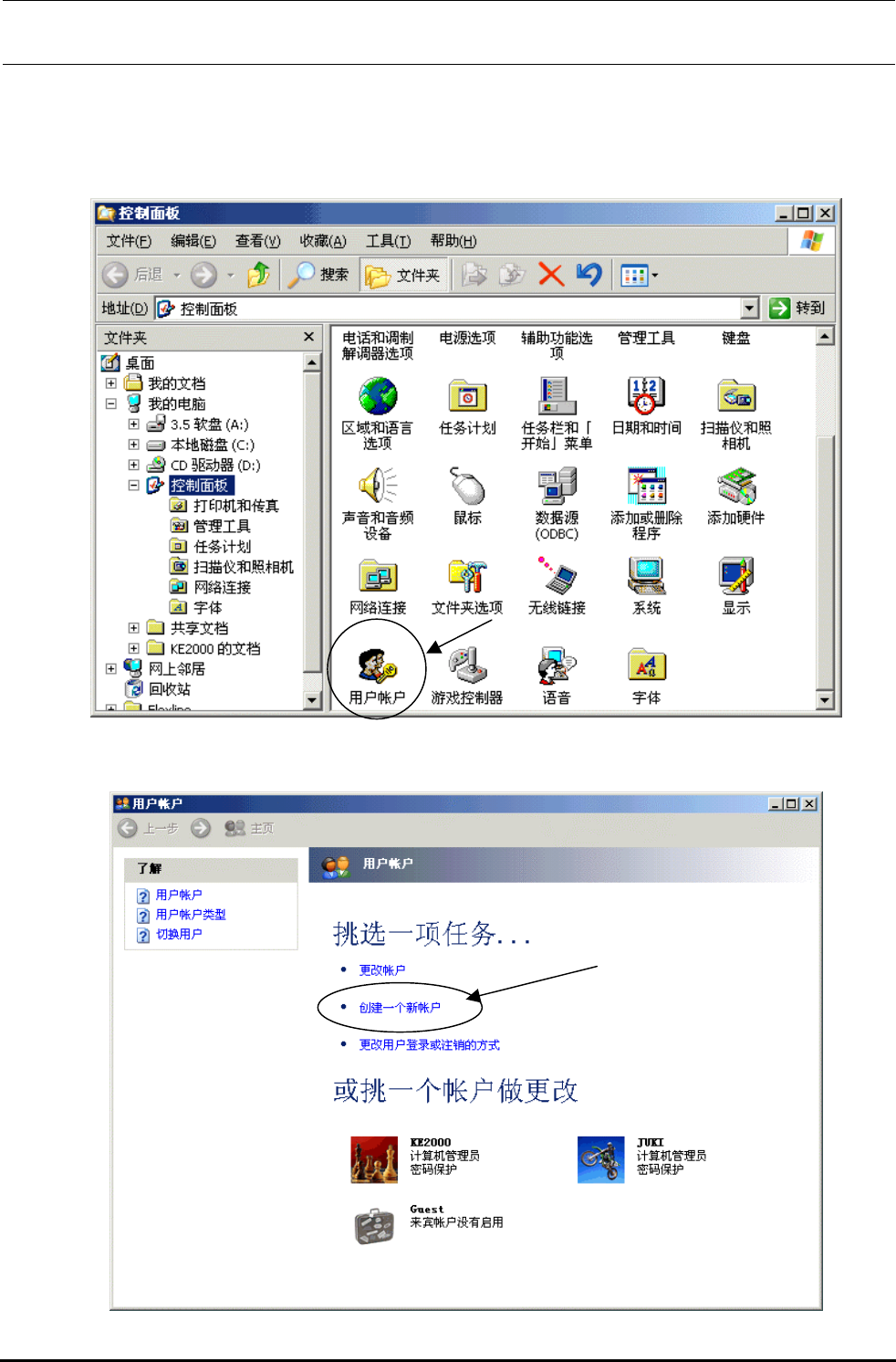 3)于是显示「用户账户」对话框,这里请选择[创建一个新账户]。