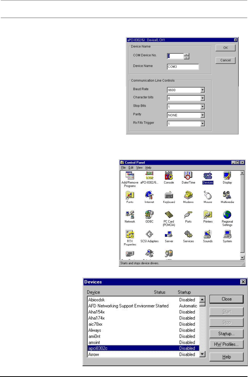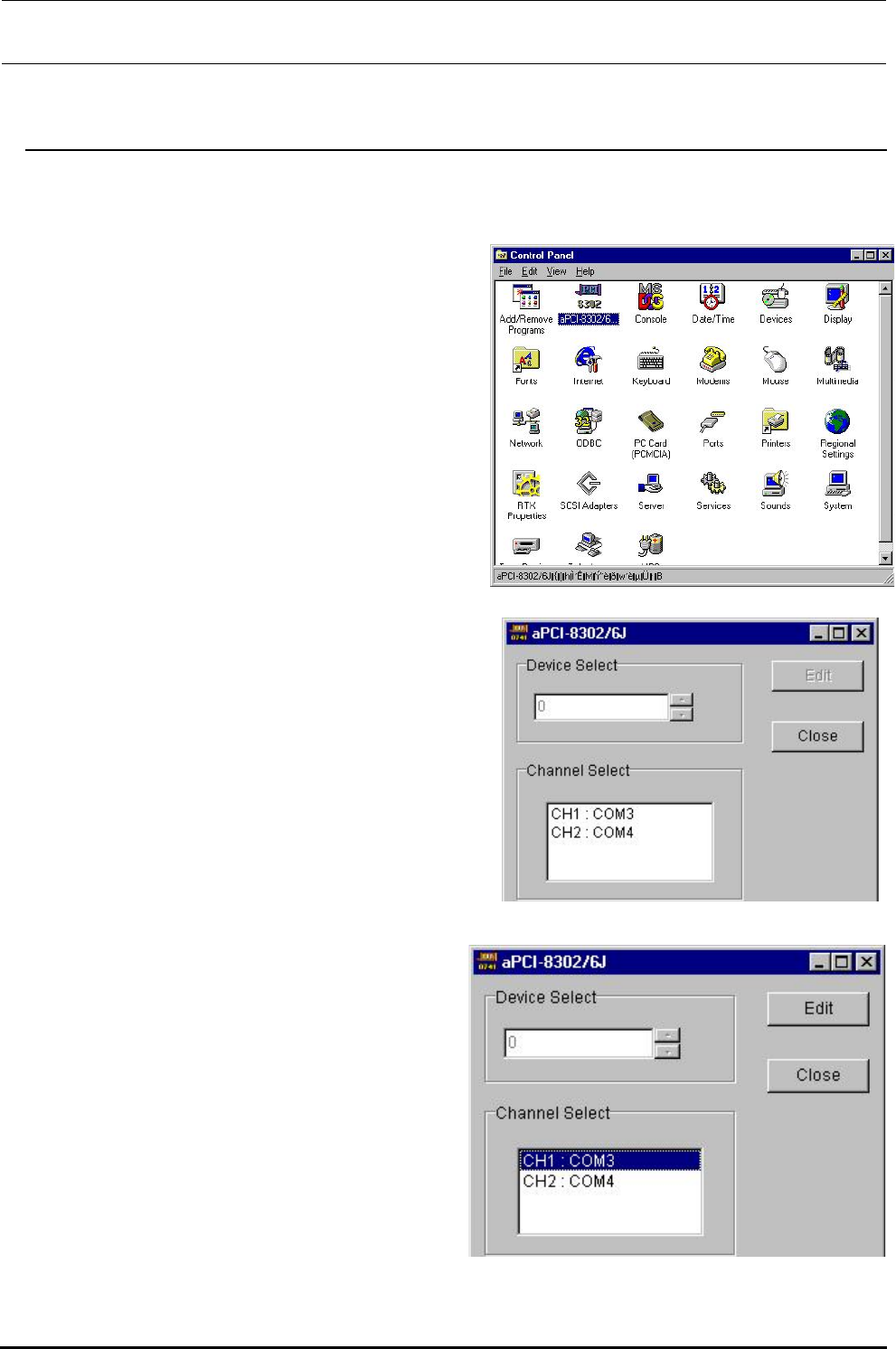 ① 启动控制面板的 apci-8302/6J(COM