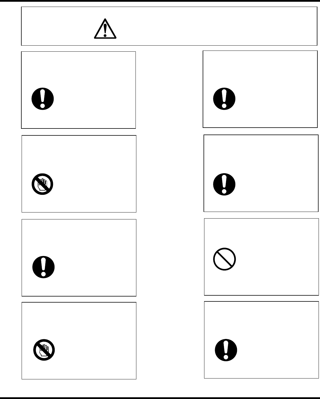 RHS2B 维修手册 DA4MCC- 03-010- A0 安全性 -3 警 告 务必检查联锁 开关。 不正确的机器操 作可能导 致人员伤害。 在生产转换之前,请先关闭伺服电 机的开关。 可移动的轴可能 已开始工 作,将导致人员 受伤。 在操作时切勿不要将手或者手指伸 进机器内。 机器可能会咬住 手或者手 指,导致人员受 伤。 身体切勿靠近 在进行维修前 , 请先阅读维修手册。 在进行维护前,请先关闭机器电源 开关。 不正确的机器操 作…
