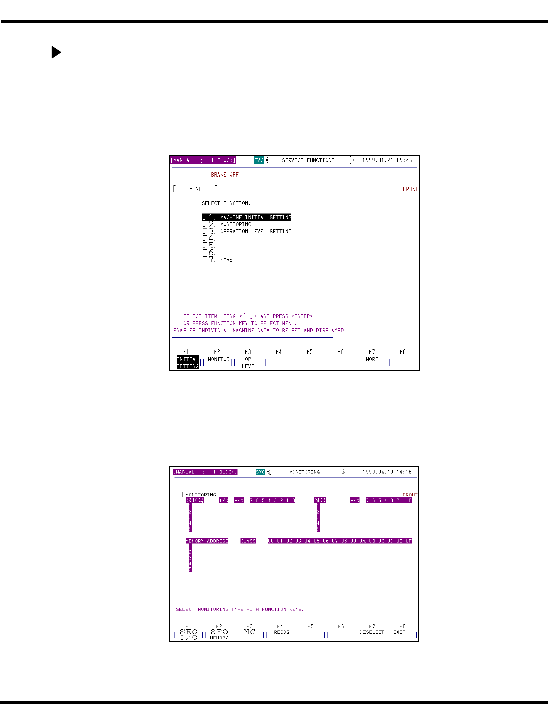 <F2: SEQ MEMORY>、 <F3: NC> 和<F4: RECOG> 是仅供工程师使用的功能。