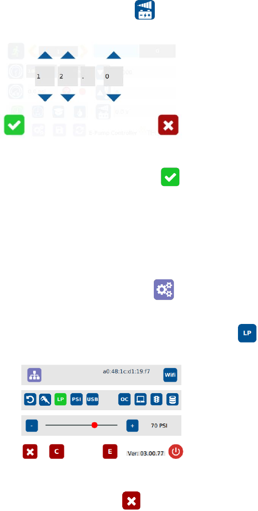 2. Touch the Low Pressure (LP) icon to set the desired low pressure