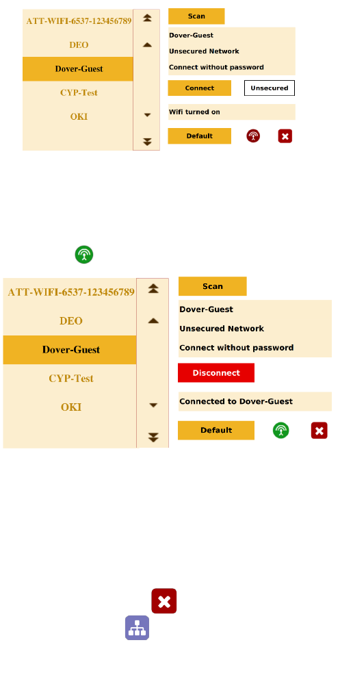 21 4. Touch the “Scan” tab to scan for all available networks 5. Touch the Up and Down arrows to select the desired network 6. If the selected network is an unsecured network (not password pr otected), touch “Connect” ta…