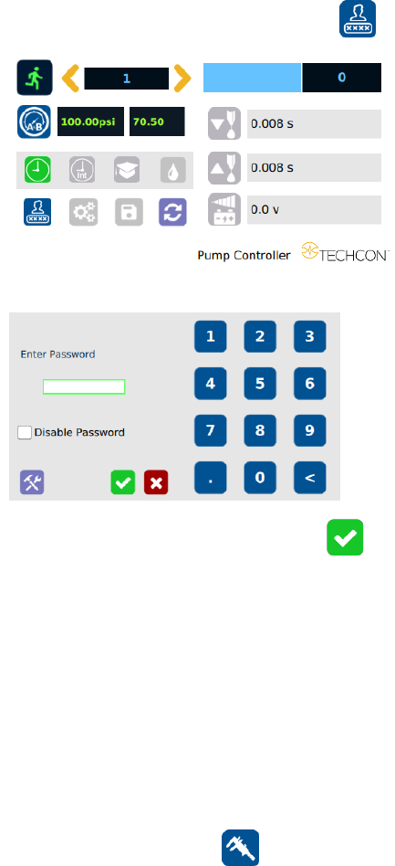 6. Touch the 100 icon to set the pressure to 100