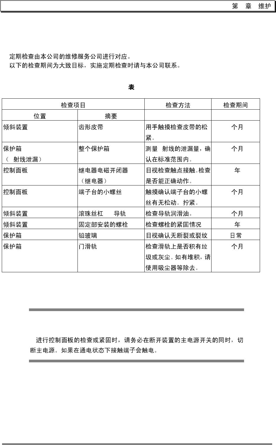 7 1 19 7.1.2. 定期检 查项目 定期 检查项目 定期 检查项目 定期 检查项目 7-2 6 X X 6 1 6 ·LM 6 1 6 警 警 警 警 警 警 警 警 告 告 告 告 告 告 告 告