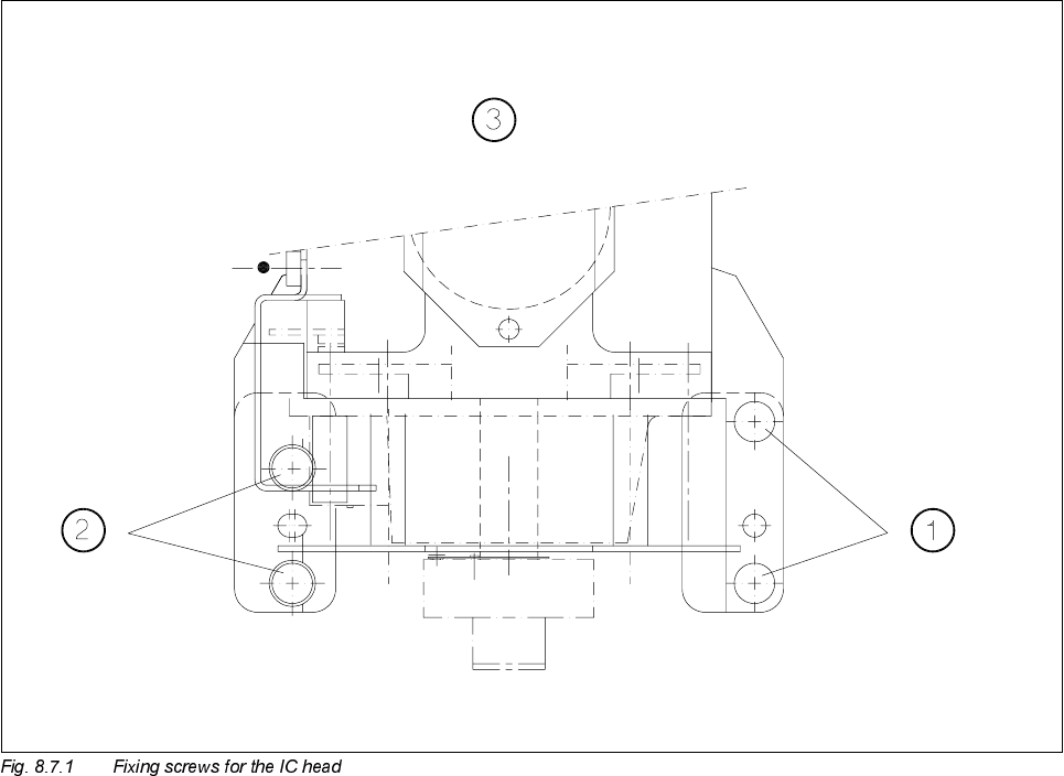 ● Loosen the four fixing screws for the IC head as shown in Fig. 8.7.1.
