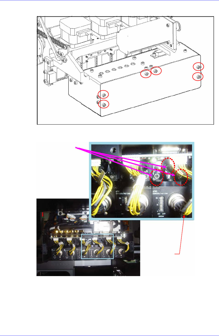 5. 替换摄像机后在未拧紧固定摄像机的固定螺丝(M3-3 个)的状态下进行组装,连