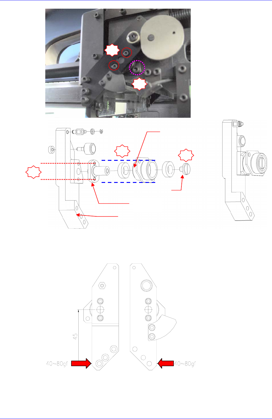 重新组装 3 号螺丝时,利用 Force Gage,使测定值为 40~ 80 kgf。此时,首先