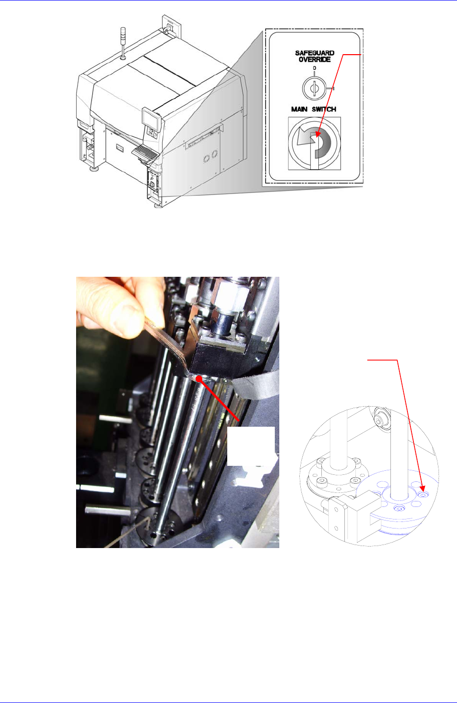 Samsung Component Placer SM421 Service Manual 4-64 4. 从 Slide Body 分离弹簧后,用扳手 (7mm) 夹紧 home(A), 利用扳手 (7mm) 从 Ball S pline 分离出接头。 Groove(A) 接头 (B) 弹簧 Slide Body