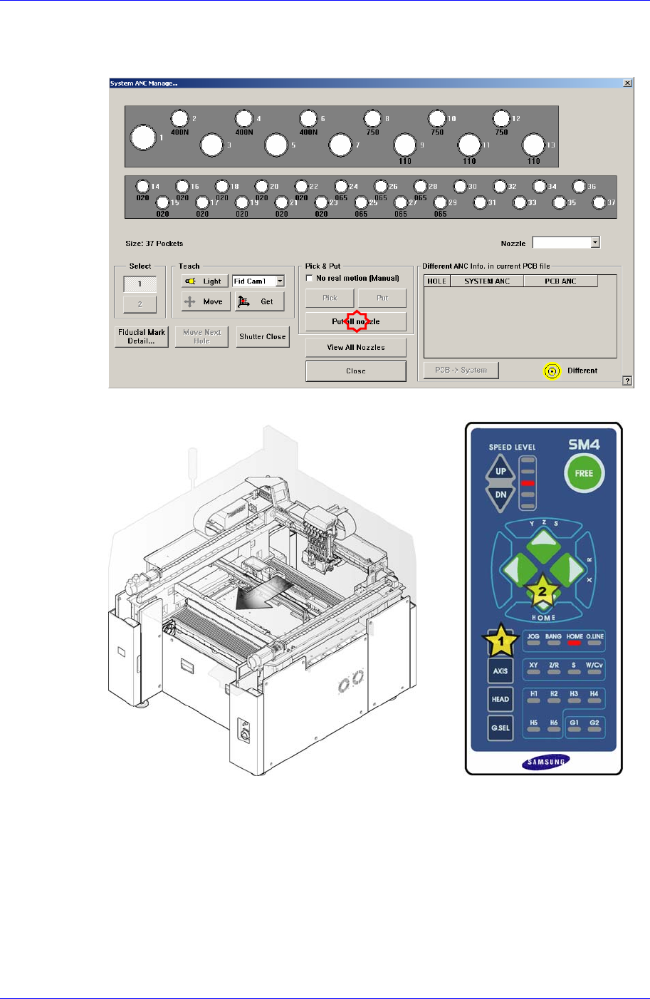 1. 贴装在 Head Assembly 转轴上的喷嘴点击<Put All Nozzle>按钮。