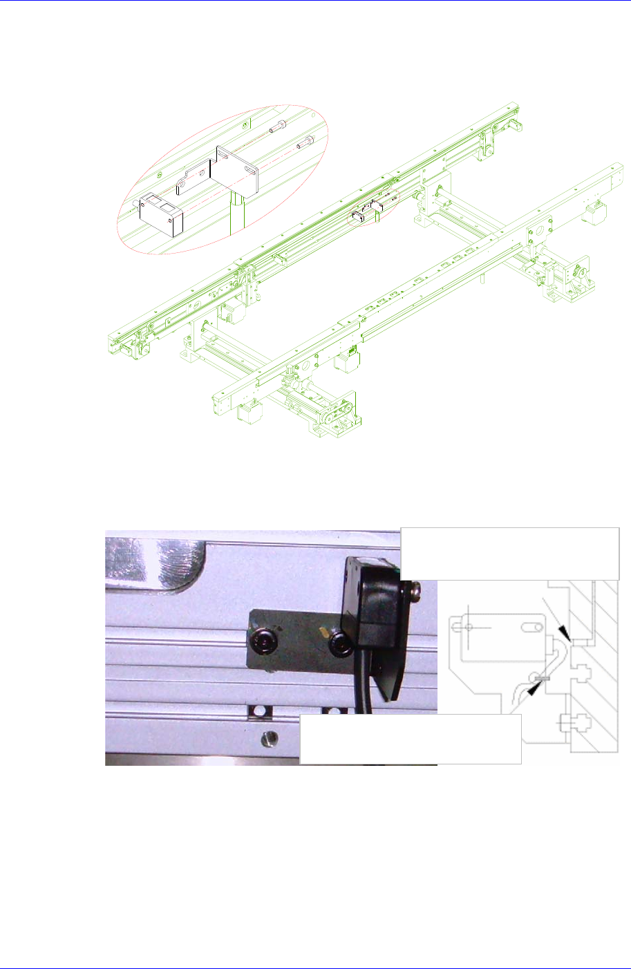 Samsung Component Placer SM421 Service Manual 5-12 5.3.3.1. 更换 Entry Sensor 1. 请执行 “5.3.3 更换传感器时的共同作业 ” 的 # 一阶段和 #2 阶段。 2. 拧开下图的固定螺丝( M3-2 个)从 Bracket 中分离传感器。 3. 按拆卸的逆序组装传感器 后,如照片所示进行配 线。然后用 Cable T ie 进行固定 。 4. 请执行 “5.3…