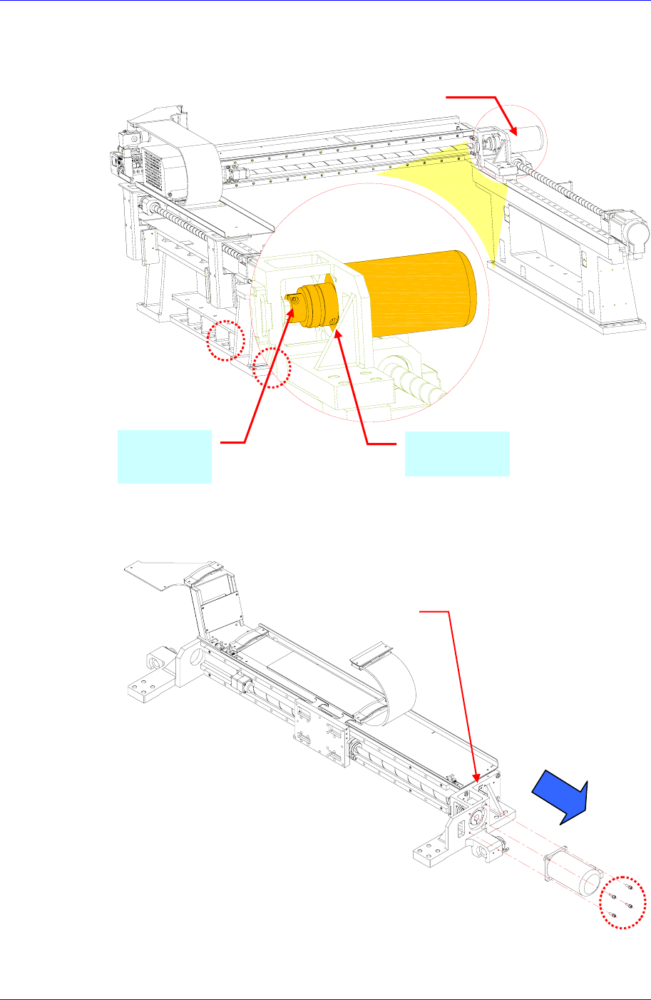 5. 请清除连接 X 轴马达和 Ball Screw 的 coupling 六角 socket bolt(M4)。但,只更换 X