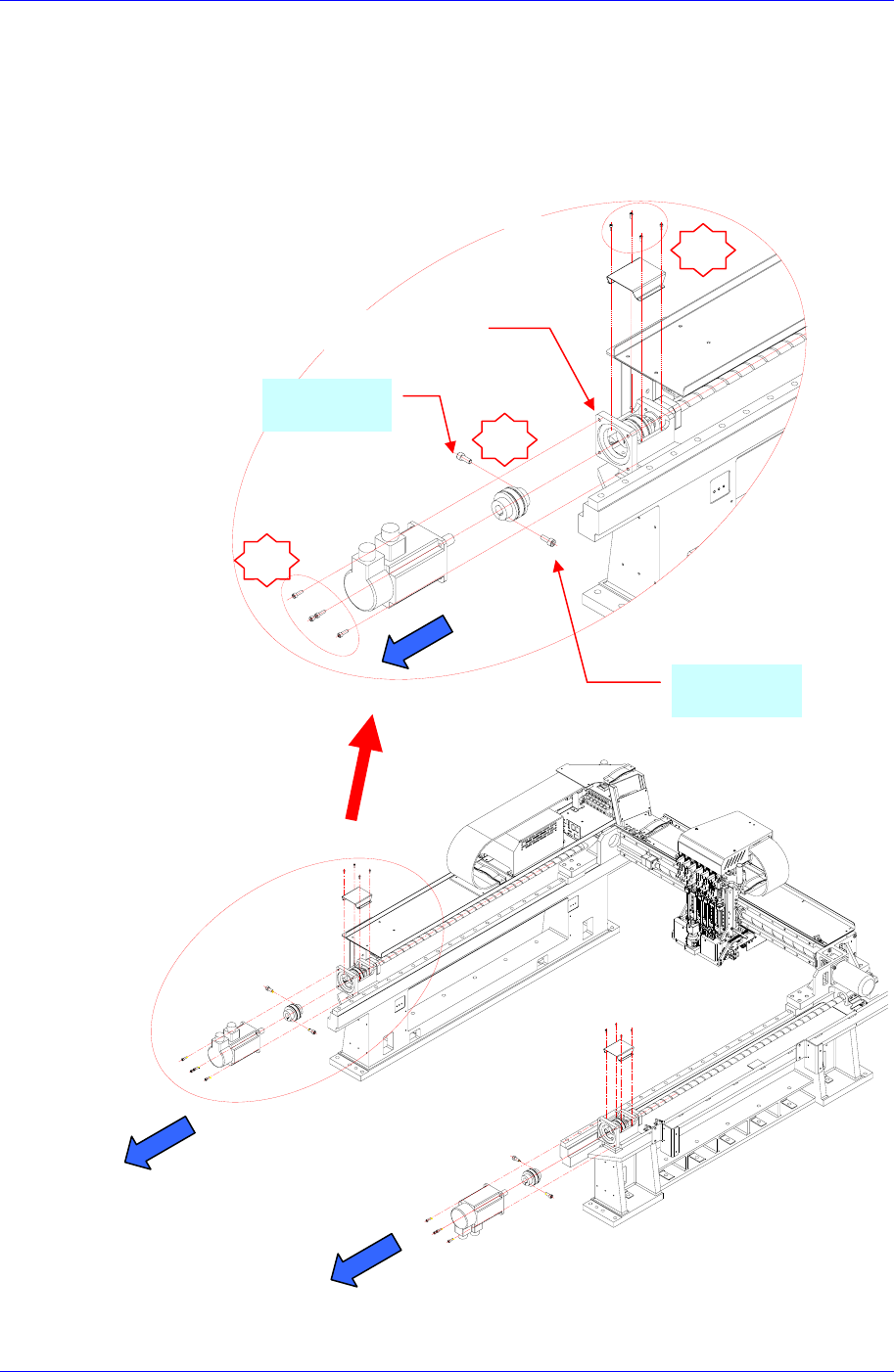 ③ 拧开马达固定螺丝(M5-4 个)后,按下图的箭头方向分离马达。