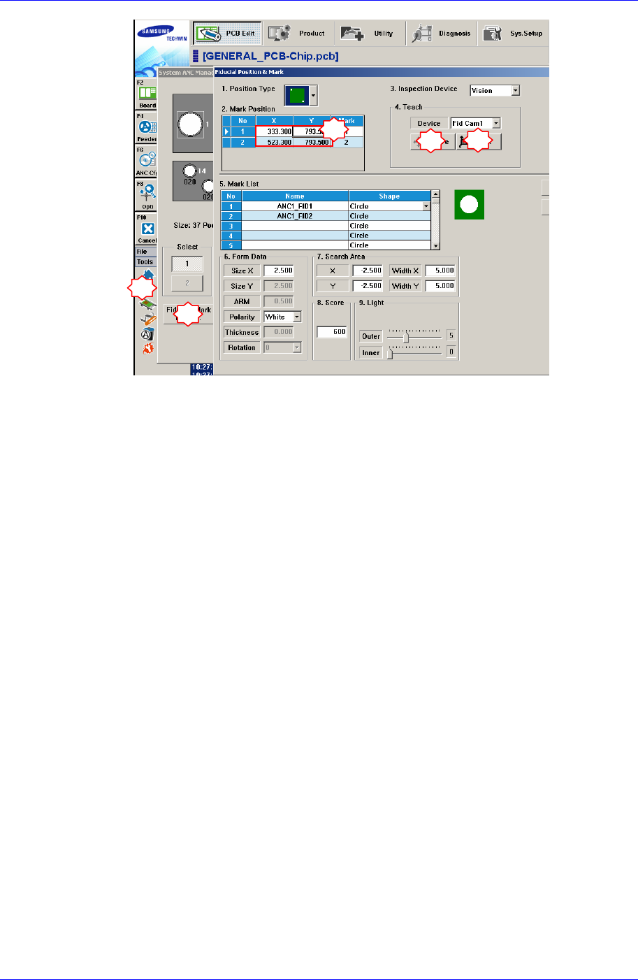 按 Scan 使 Teaching 坐标的误差 X,Y diff 值到 0.005mm 以内时为止反复进