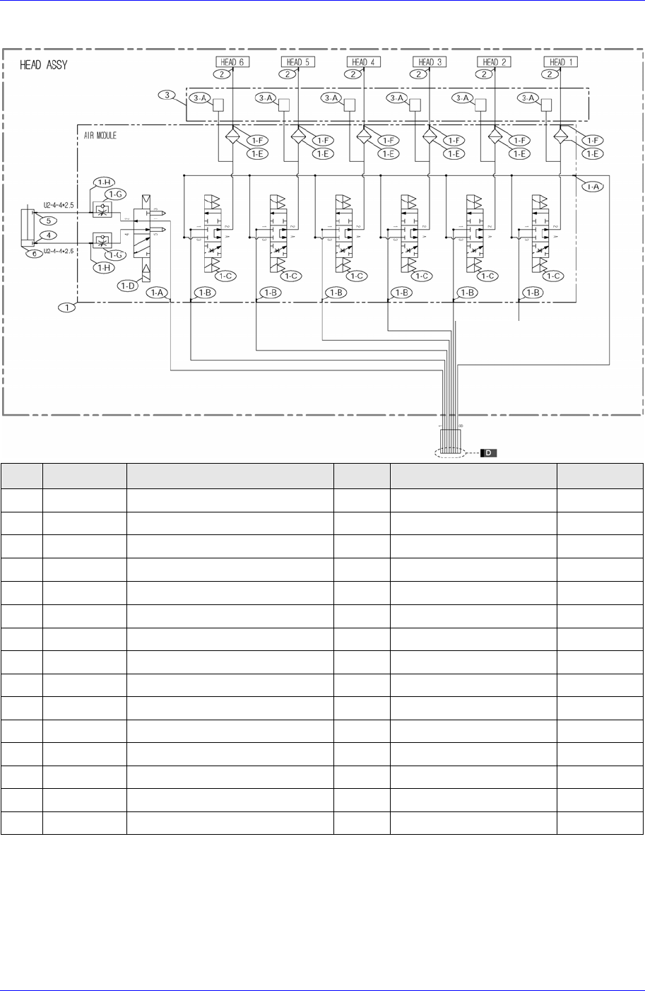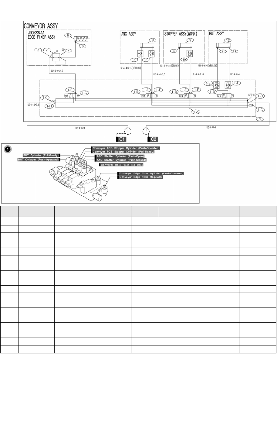 Air Ass’y 10-3 10.1.3. Air Ass’y (C) – Conveyor NO. P ART NO. P ART NAME Q ’ TY TYPE REMARK 1 J6702050A SOL V AL VE MODULE(4 연 ) 2 SY3120-04-CJJZ2399 1-A J6704006A MANIIFOLD BLOCK 1 SY3120-20-KRW0098 1-B J67021005A SOL V…