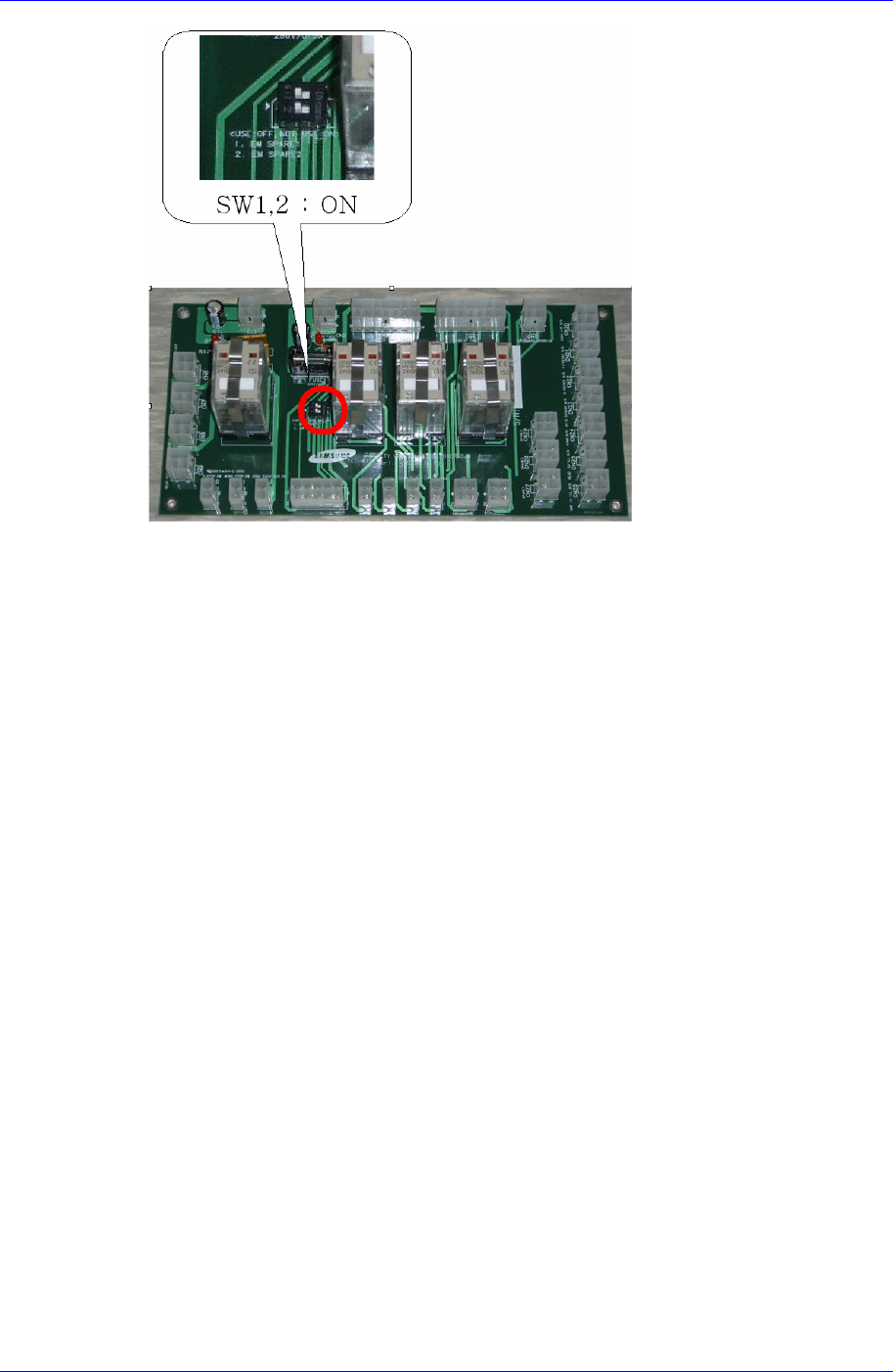 Boar d Ass’y 13-25 3. 拧开下图中的 4 个 Support 进行分离。 4. 拧开 4 个组 装在 board 的 Support 分离 board, 替换 board 。 5. 请分离连接在相应 Board 的连接器。 6. 组装时为拆卸的倒序。组装时, 下图的开关 1 , 2 号设置为 ON 状态。 4 个 4 个