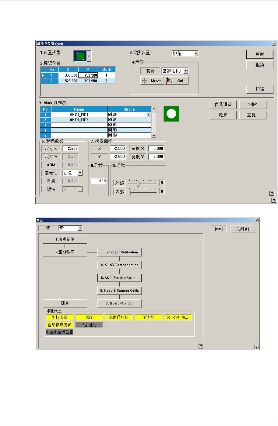 Calibration 3-19 3.2.7. Head & Camera Calibration 执行照相机校正功能。执行校正 的顺序及所需的工具为如 下。 - Fix Camera Scale Calibration (CNT20 Nozzle) - Fiducial Camera Offset Calibration (CNT20 Nozzle) - Head Z & R Offset Calibration (C…