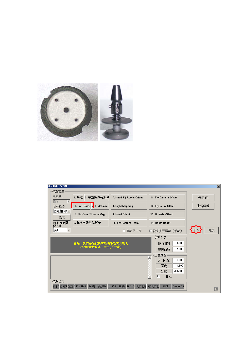 1. 点击<3. Fix1 Cam.> 按钮则在消息窗显示 “首先,我们必须把所有吸嘴手