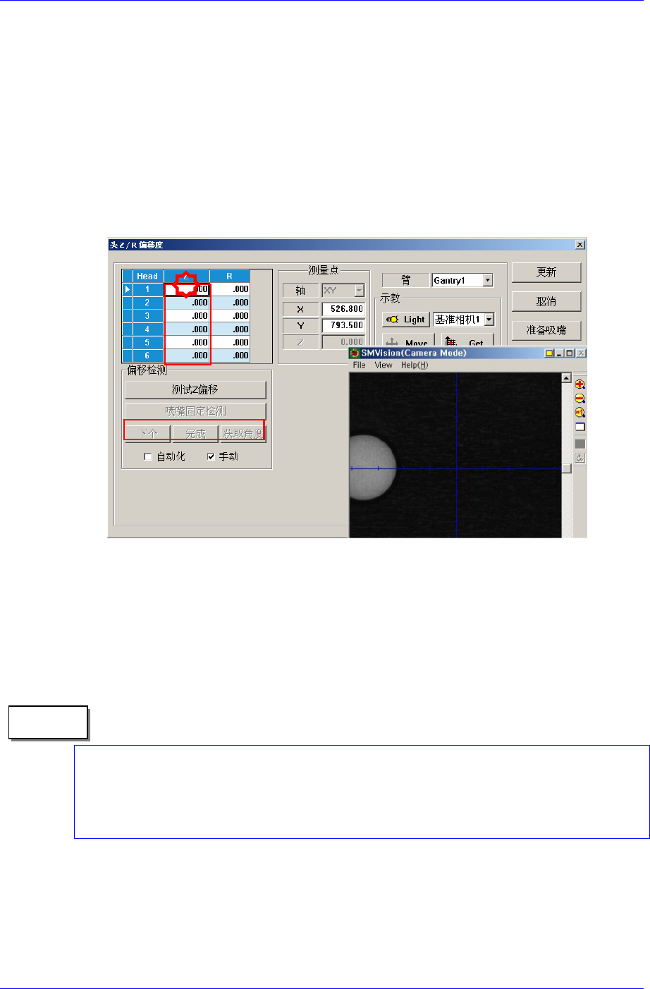 相机上看见 Head 吸嘴支撑架,把 Spindle 上升到可以识别部件的高度后,为了