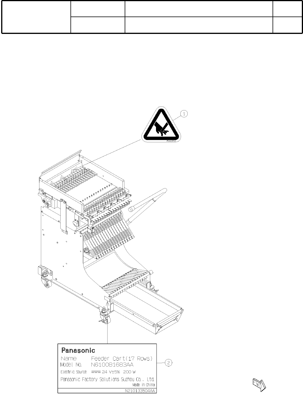 28 銘板 ・ 警 告ラベル(交 換 台車(17連)):NPM Label(Feeder Cart(17 Rows)):NP M パーツレイアウト Ki t N o . キット 品番 Kit N am e キット名称 N610084837AA セクションNo. PARTS LAYOUT Section No. - - O121 ( KN610084837AA-06 )