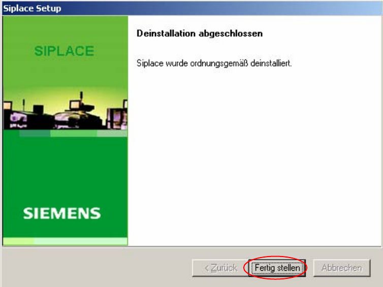 Die SIPLACE Software und SIPLACE Vision sind nun ordnungsgemäß deinstalliert.