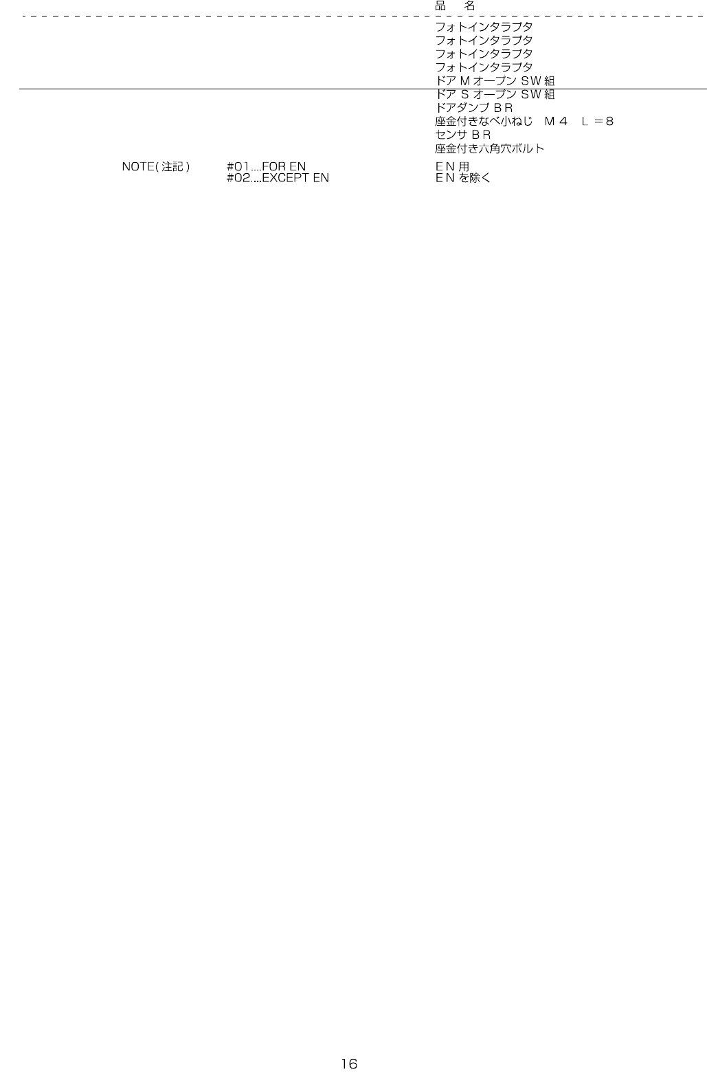 REF.NO NOTE PART NO D E S C R I P T I O N Qty