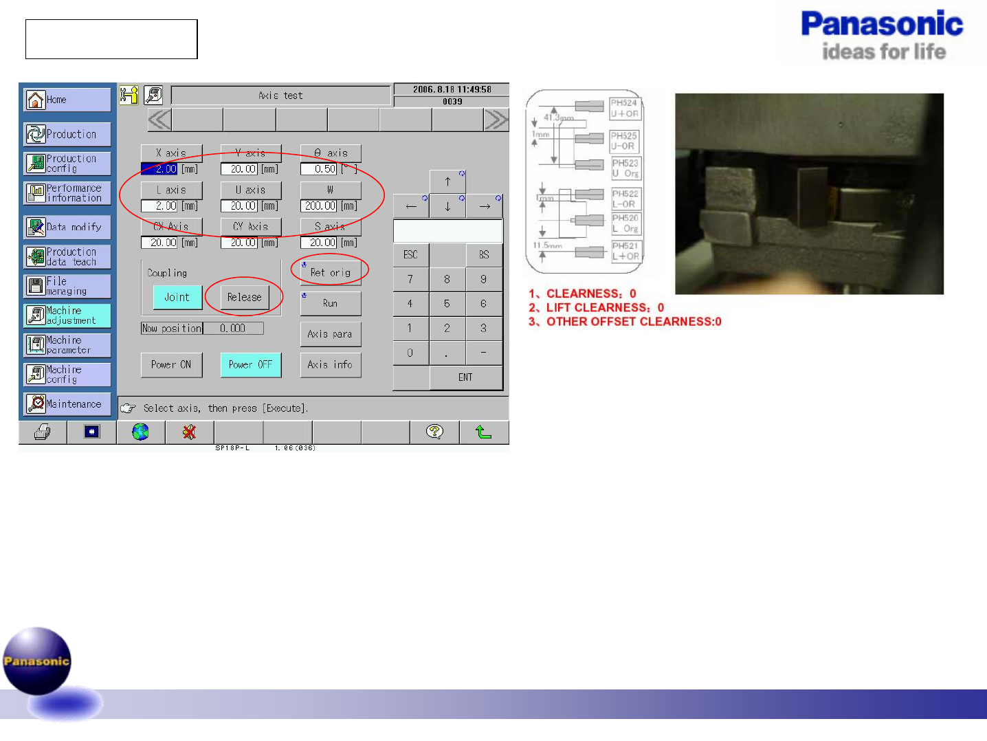 1. 进入AXIS TEST,选择L AXIS,点击RELEASE,松开电机侧联轴器